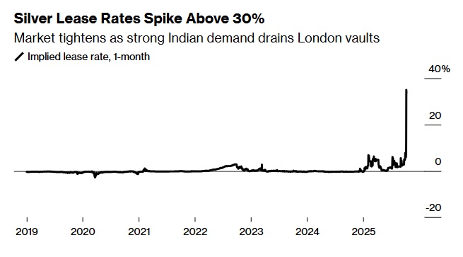 最近几周,印度需求激增,导致伦敦可供交易的白银供应量减少。此前,由于担心白银可能受到美国关税的冲击,两大交易中心之间出现了巨大的贸易冲突,导致大量白银涌入纽约。