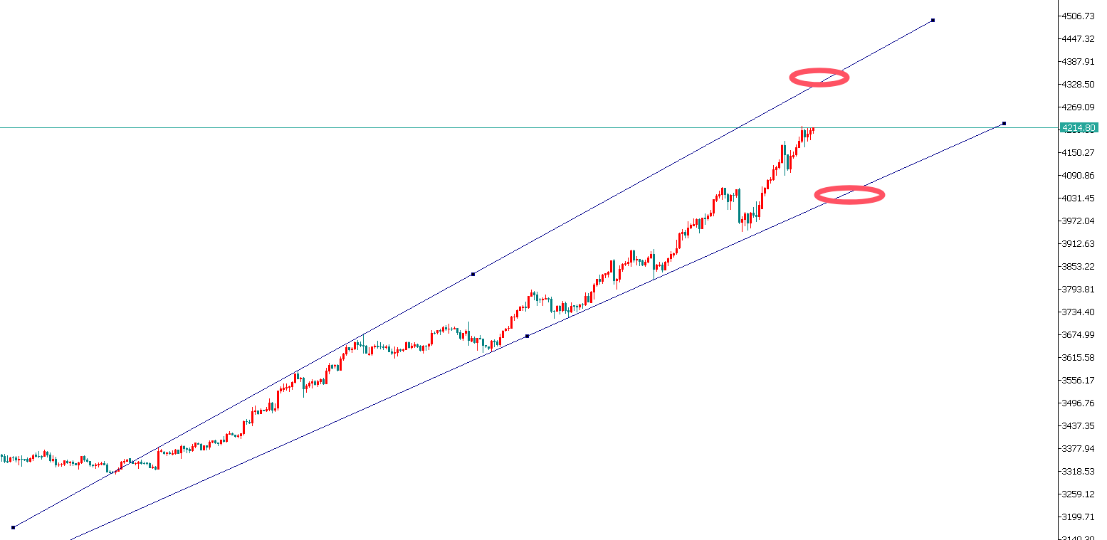 如行情突破4240-4250压制,那么接下来行情恐怕将进入继续加速冲高阶段。4小时图方面,上方强压力位重点关注4350附近,下方趋势支撑则聚焦在4020附近。