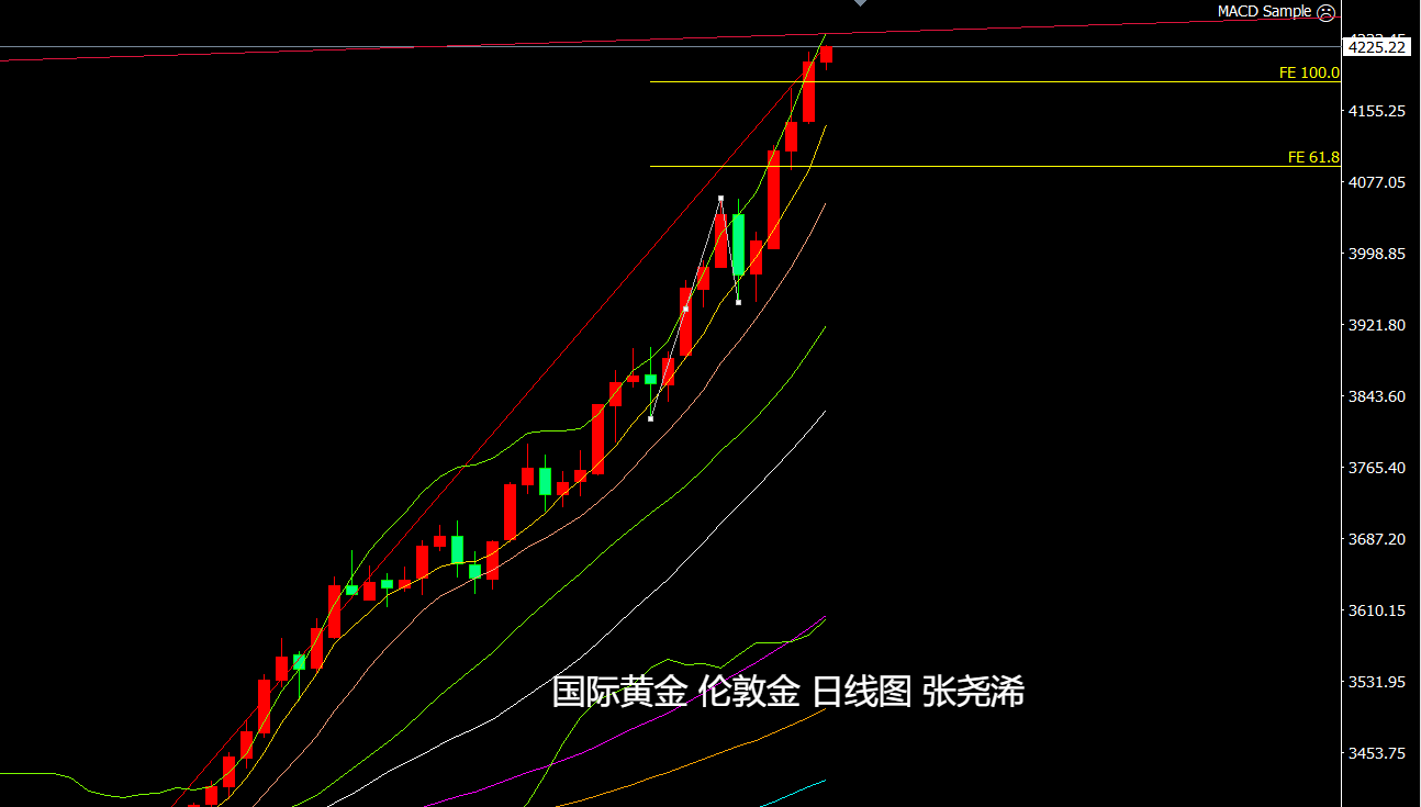 日图;金价昨日仍继续收取阳线,如期触及4200美元关口,维持多头动力,保持在短期均线上方,短期有望继续走强触及布林带上轨目标4240美元或更高位置,下方关注100数值扩展线支撑以及5日均线支撑。