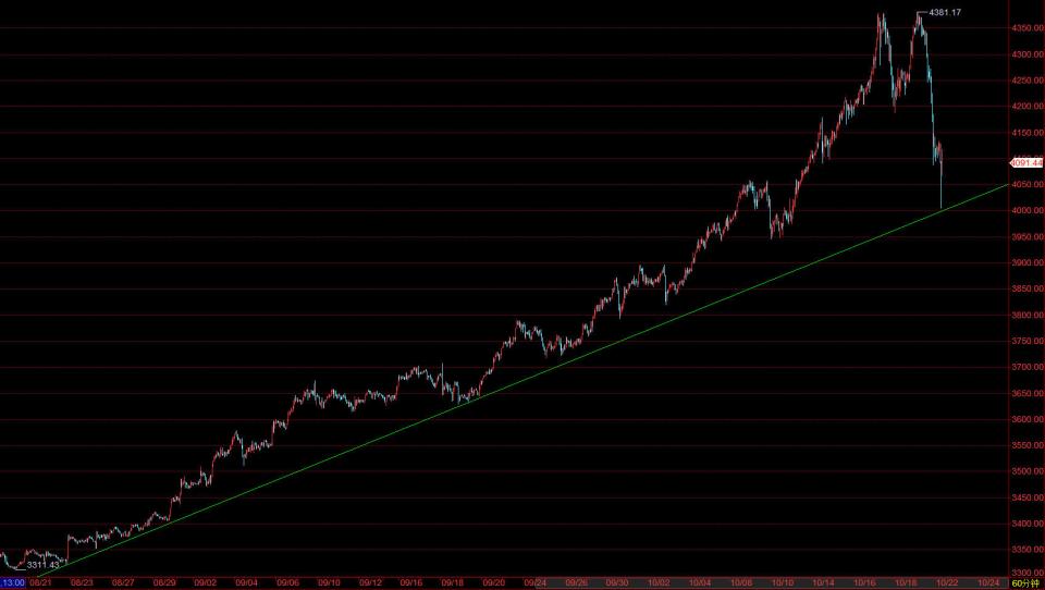 目前的话,已经下跌到3311上涨以来的趋势线,后面估计走势要缓冲了,4004不破区间要区间摆动一下,然后就是前期起点3944的支撑,上方的话4123压制,没破之前高空,破位的话,说明要反弹一段,那样的话4150关口,4180关口,以及4220的压制才会进一步下探。这种行情波动大,速度快,看起来机会一大把,一不注意操作就是乱如麻,很容易激发人的恐惧和贪婪,时刻要保持头脑清醒,风控务必要跟得上,否则很容易失控。