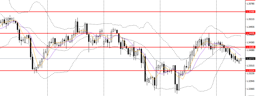 镑美昨日收小阴线,回踩10日均线,4小时呈复杂顶部形态,1.34附近如不破可继续进空,后市有望下探1.3330。
