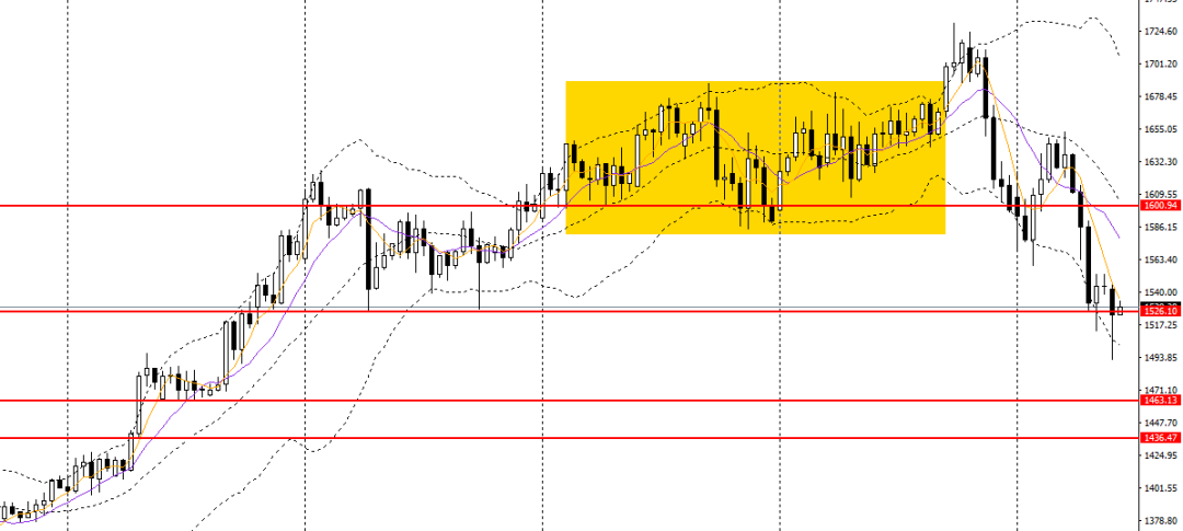 铂金日线呈空方炮,日线RSI下破50,4小时刺破1520附近支撑,短线走势偏空,空单可继续持有,后市大概率将回踩1460-1480。