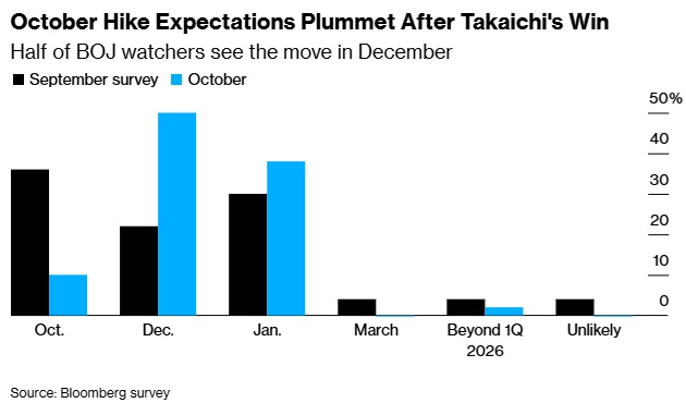 高市早苗成日本首相后 日本央行10月加息预期惊现“大变脸”!