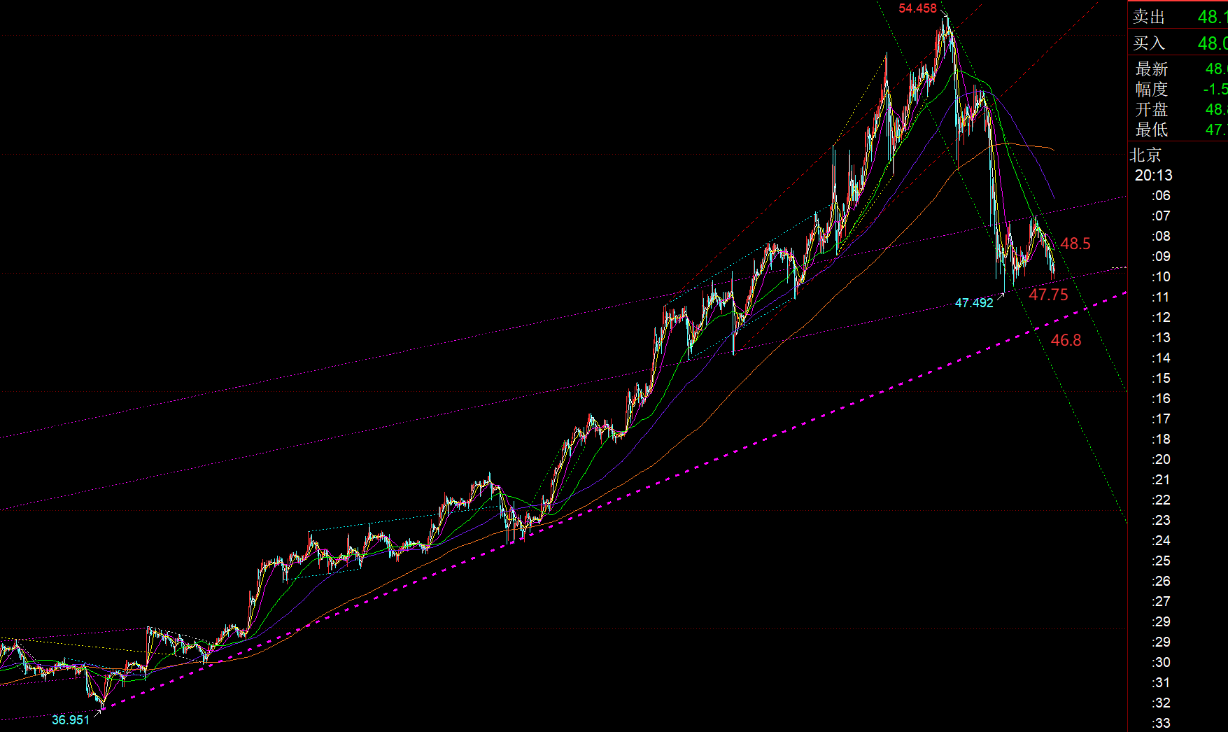 第二,白银方面:运行于47.75-49.7之间震荡,昨日美盘也出现了滞涨信号,但只提示了黄金试探;