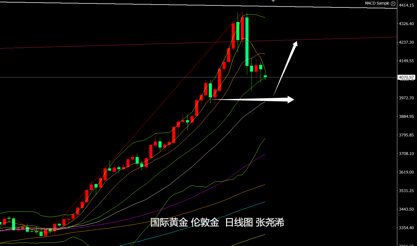 上方需突破10日均线阻力,才能加大看涨动力回归看涨攀升,否则将有再度回踩4000关口或30日均线支撑3960美元,乃至60日均线支撑位置。