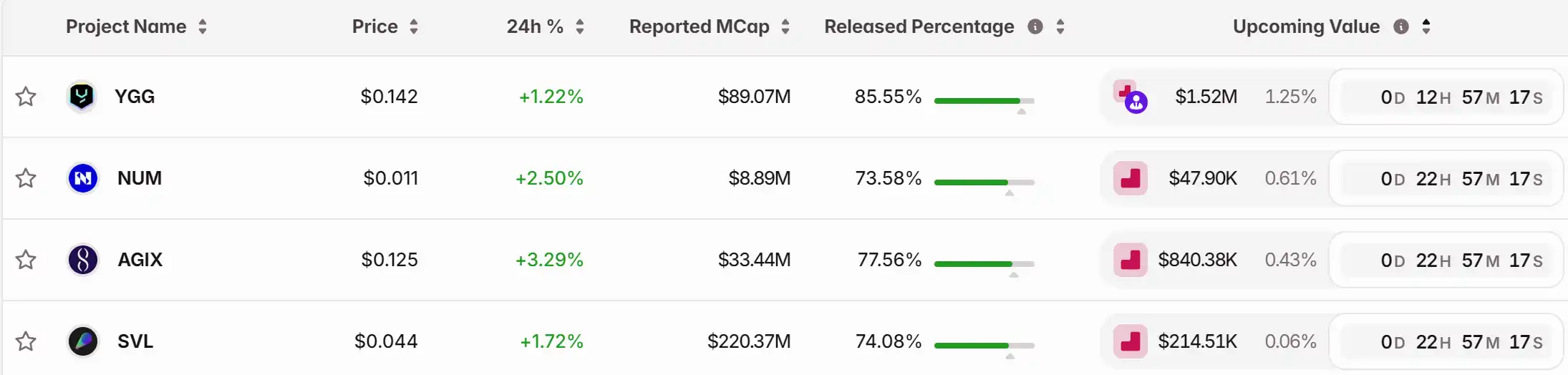 每日市场整体资金热度(根据资金费率反映)与代币解锁