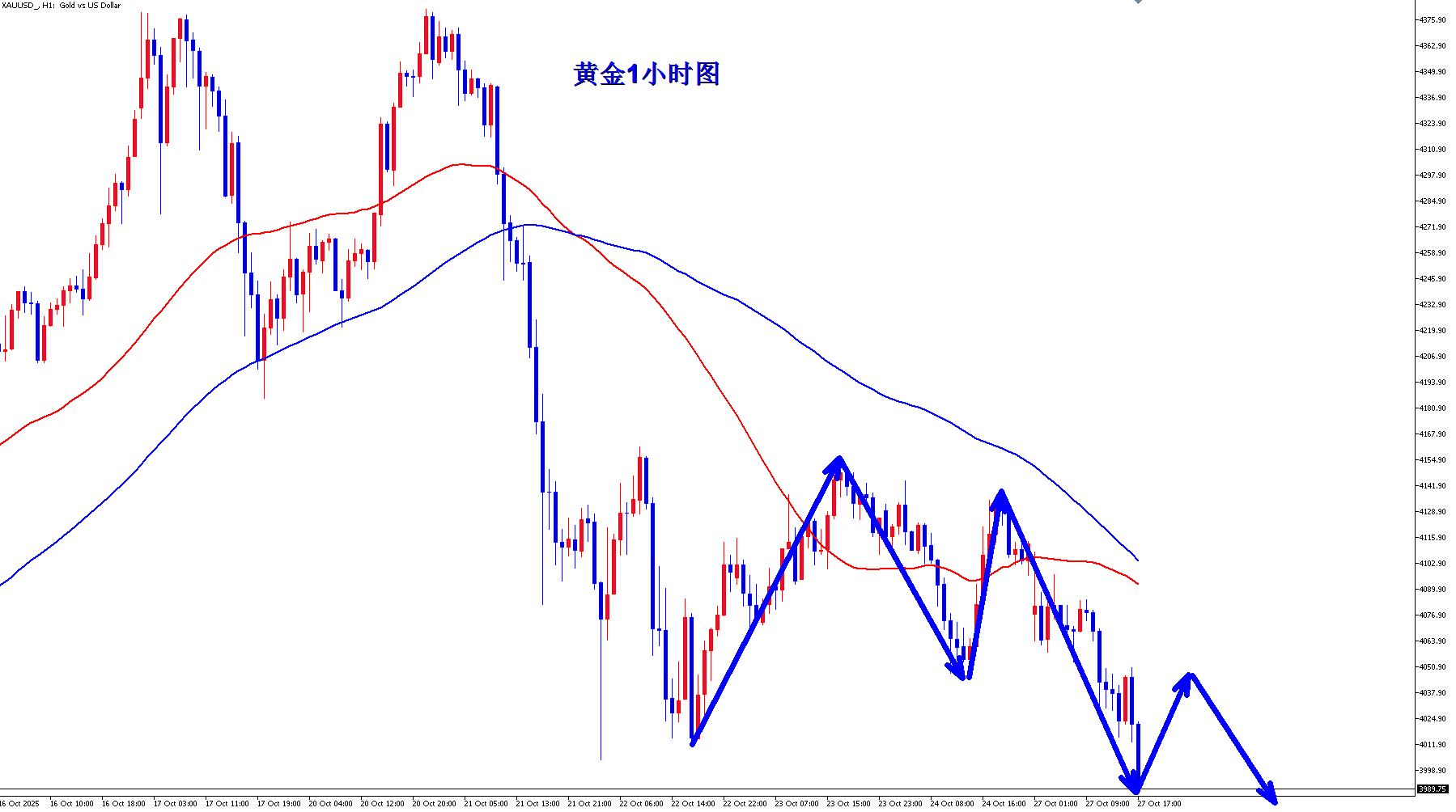 黄金现在多头无力回天,黄金空头当下还在继续狂欢,黄金已经失守4000一线,那么黄金下跌空间还将进一步打开,黄金调整还未结束。反弹就是顺势继续空!