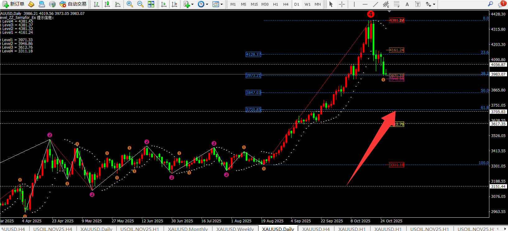 任天成:10.28黄金持续向下且今日破位3970概率较大