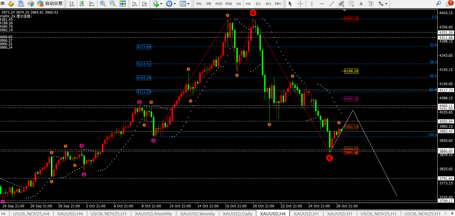 任天成:10.29黄金依旧呈现弱势短期震荡偏反弹