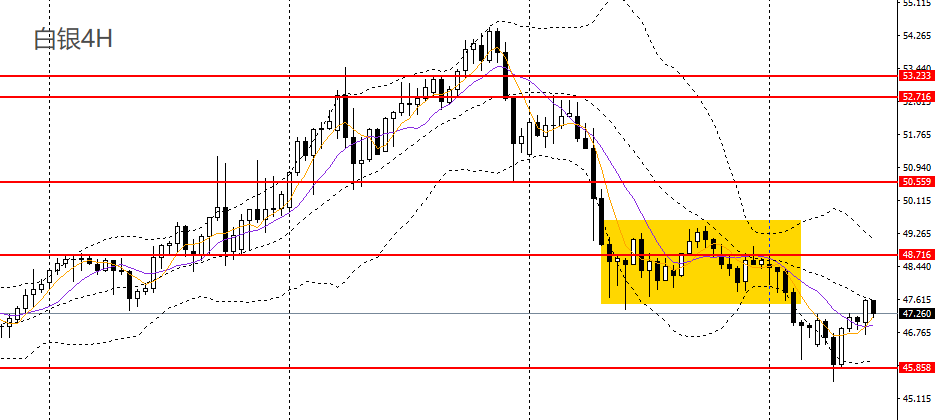 白银止跌回升,日线RSI拐头上行升至50附近,4小时呈头肩底,短线趋势转多,47附近企稳可进多,上方首先关注47.70附近阻力,如继续升破,可上看至48。