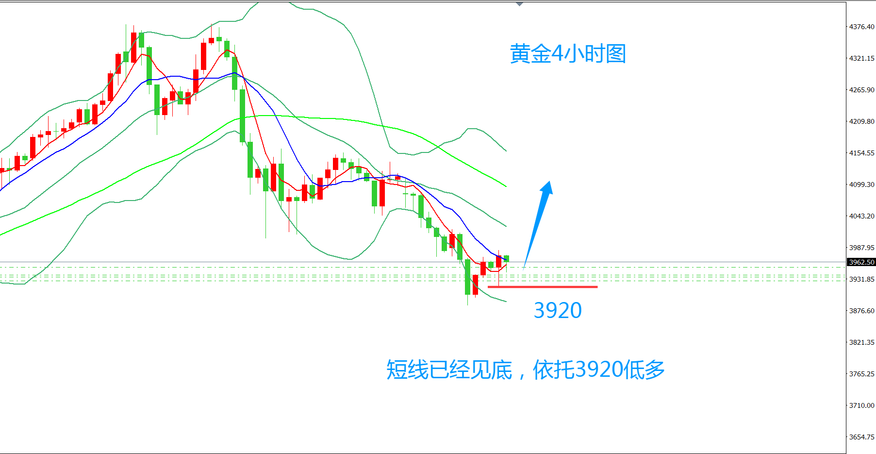 日内,早盘快速急跌测试了3920附近后直接反弹破新高,3920的短线支撑点已经确认,预计太低的位置不会给,今天早盘我再次布局了做多抄底,准确来讲,这不是真正意义上的抄底,而是看一波反弹行情,反弹的目标位,也就4100——4150区域。日内重点关注回踩3945附近的进场机会,依托3920为支撑点,择低布局即可。
