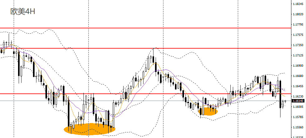 欧美昨日拐头下行,日线RSI跌破50,4小时一度刺破1.16大关,短线趋势转空,1.1630附近承压可进空,如跌破1.1570,可看空至1.1550。