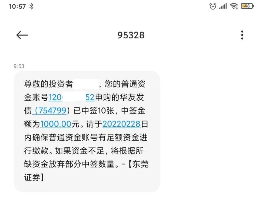 投资者在确认打新债“中签”后,尽快在“指定时间”和“指定账户”内准备一千元资金,以便中签后及时扣款。(系统自己扣款,无需动手)