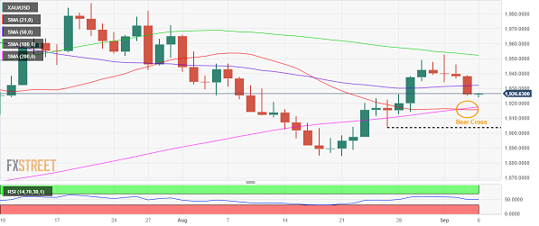 Mehta称,从黄金日线图来看,看空交叉仍在发挥作用;相对强弱指数(RSI)转为看跌。因此,金价可能会进一步下跌。