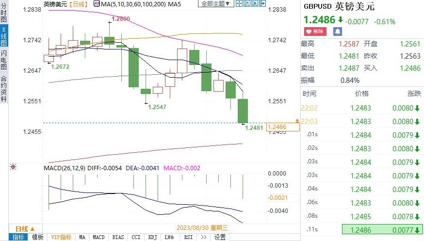 英镑/美元现走低至1.2536美元,前一天下跌0.5%,当时触及6月中旬以来的最低点。9月份仅几个交易日已经下降了近1%。