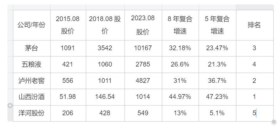 讲真,做出这个表以后,我自己都有点震惊了,我本以为茅台稳居第一,结果竟然是汾酒和泸州老窖位列冠亚军。