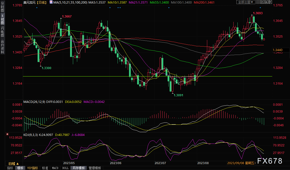 北京时间08:43, 美元兑加元现报1.3511/13。