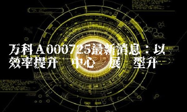 万科A000725最新消息:以经营效率提升为中心开展转型升级