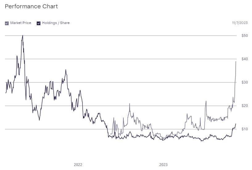 Grayscale 的数据显示,截至发稿时,GLNK 股票的交易价格为 39 美元,而 LINK 代币的市值为 12.51 美元。这意味着GLNK的价值是其持有的基础资产的三倍。