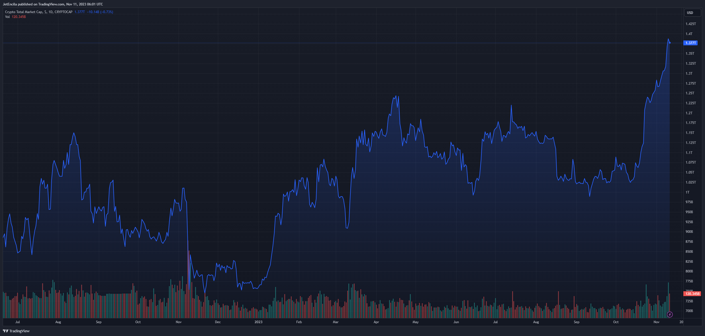 加密货币通常被认为是去中心化的且不受传统经济波动的影响,在经济不稳定时期可能会引起更多关注。截至撰写本文时,全球加密货币市场当前估值为 1.47 万亿美元,过去 24 小时内上涨 2.07%。