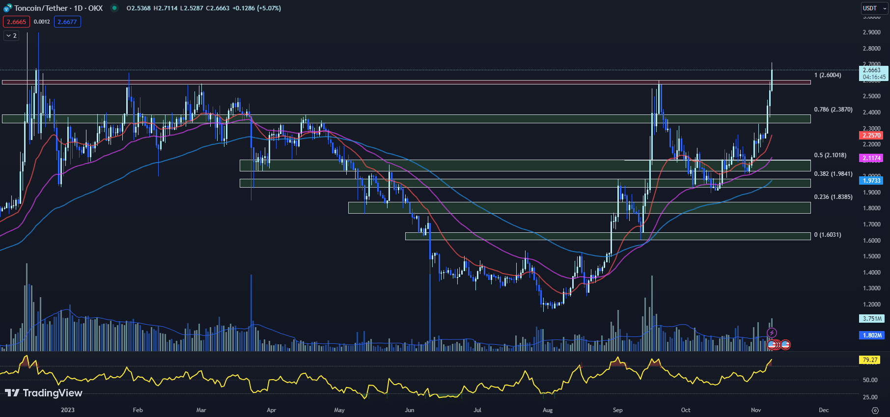 最近几周,Toncoin (TON) 价格出现强劲上涨趋势,今天早些时候,该加密货币创下了 2.7144 美元的年初至今高点。