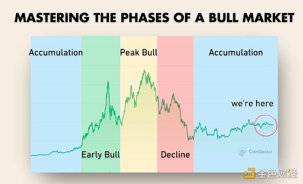 我们现在正处于这个阶段,并且已经持续了一年左右。经历了 Terra 崩盘、FTX 崩盘以及 USDC 脱锚的恐慌之后,市场触底反弹。