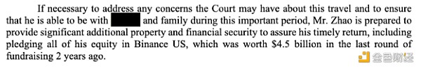 1月24日的法庭文件披露了一封之前封存的信函,日期为12月22日,是赵长鹏的律师致法官理查德·琼斯的。根据这封信函,赵长鹏提供了他在Binance.US的股权作为抵押,该股权根据两年前的一轮融资价值45亿美元。