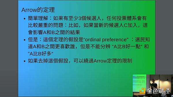 Vitalik 接着解释说,Arrow 定理认为无论如何设计投票系统,都无法避免这种情况。然而,他指出 Arrow 定理有一个重要的假设,即序数偏好,这意味着投票系统可以考虑你是否喜欢 A 超过 B,但不能考虑你喜欢A多少超过B。