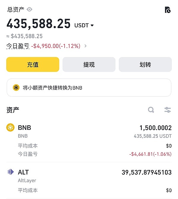 目前BNB涨幅15.8%,价值43.4万美元,质押挖到了39500多个ALT,折算获得17000多美元。