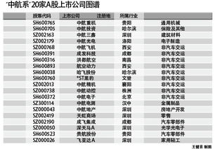 ST黑豹 (600760)中航高科(600862)中航重机(600765) 中航电测(300114) 中航地产(000043)宝胜股份(600973)成飞集成(002190)中直股份(600038)成发科技(600391) 中航机电(002013) 中航飞机(000768) 中航资本(600705) 洪都航空(600316) 中航光电(002179)中航动控(000738) 天虹商场(002419)贵航股份(600523) 飞亚达A(000026)中航三鑫(002163) 中航动力(600893) 深天马A(000050) 中航电子(600372)