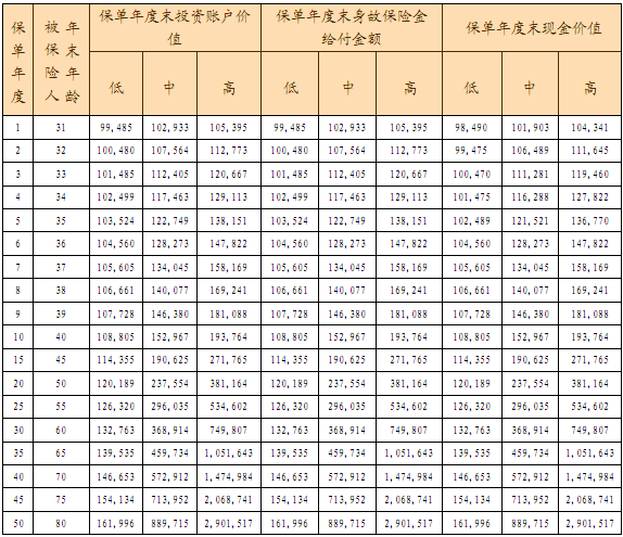1.保单年度,就是保单成立第几年2.被保人年龄 3.每年保费 4.总保费。5.保险金额(保额),这个是说出现风险赔多少。6.身故保额 7.现金价值,这个是对应的年龄当年退保能退多少钱。8.红利演示 如果有红利的产品,会分低中高档分红作为演示。9.累计红利 就是不领取最后能有多少红利。基本就这些内容。 重大疾病保险利益演示表怎么看?你看重大疾病保险承保时保额是多少?投保时会有一份建议书演示的,红利演示 如果有红利的产品,会分低中高档分红作为演示。其实你可以要求业务员上门为你解释清楚的