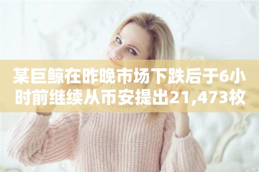 某巨鲸在昨晚市场下跌后于6小时前继续从币安提出21,473枚ETH