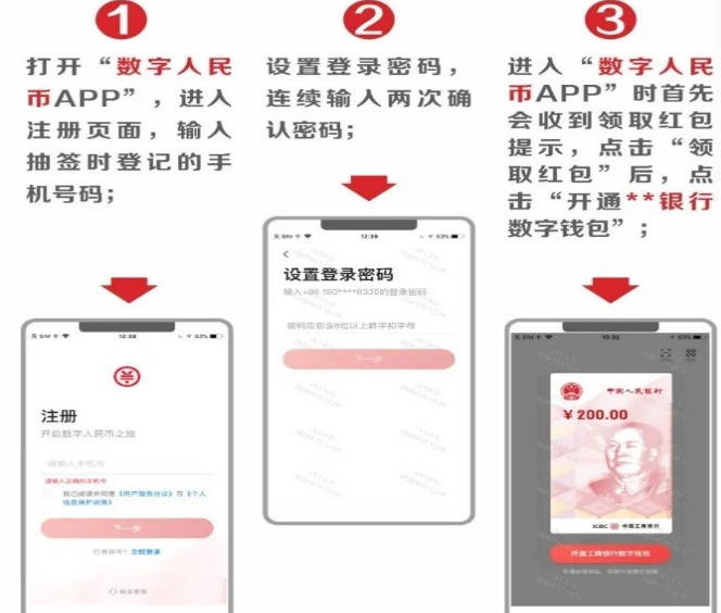 4. 在数字人民币app首页输入账号和密码,就可以登录数字人民币app,进入app之后,首先就会收到领取红包的提示。直接点击领取红包,在点击开通某某银行数字钱包的按钮,就可以将某银行的数字钱包开启。