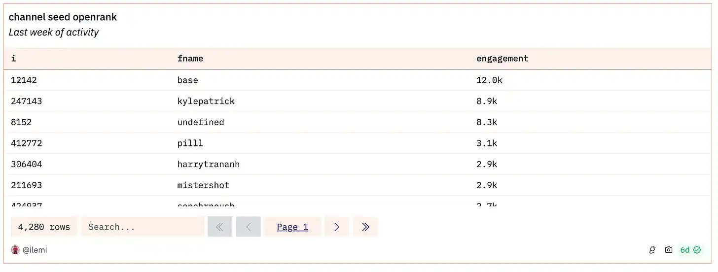 我已经在 Dune 的 wizard 社区中待了多年,见证了社区力量的强大,超过了小型团队的能力。我也看到几乎每个小型加密团队从「是的,我们可以用一个节点和 RDS 数据库独立完成这件事」到「我们需要利用像 The Graph 和 Dune 这样的社区构建的数据工具」。对我来说,创建针对特定类型的推荐流和社区调整的查询和图表组合是一个类似的问题。我们需要开始收集和测试能够在每个应用程序上提供推荐流的图表,从 Farcaster 客户端到区块浏览器。