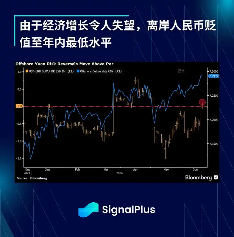 同时,外汇相关的紧张局势也开始加剧,随着中国经济增长持续低迷,离岸人民币汇率跌至今年最低水平,风险逆转也表明市场准备迎接进一步的疲软。