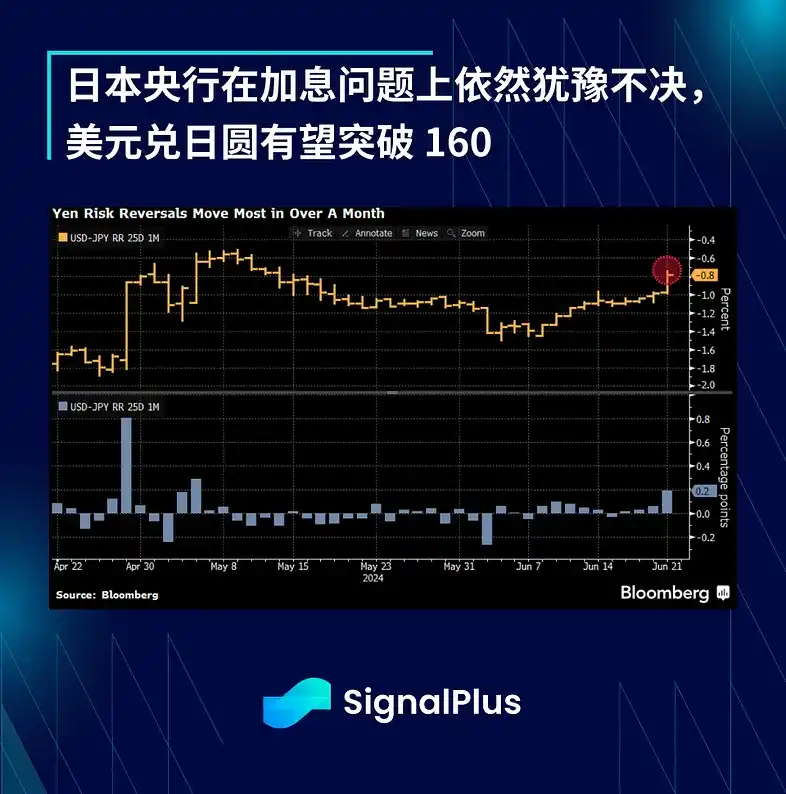 日圆也面临压力,美元兑日元逼近 160,且市场预计日本财政部仅剩下约 2000–3000 亿美元的干预资金,而日本央行官员在加息问题上依然犹豫不决,市场预计在日本央行的下一波干预措施前,美元兑日元将往 165 迈进。