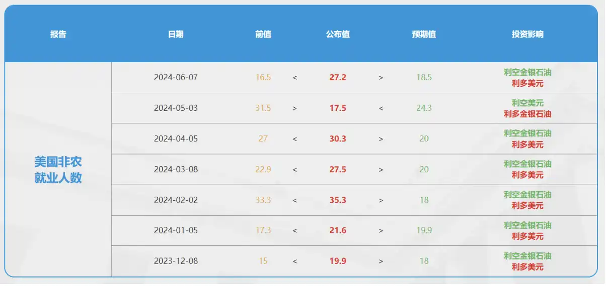 黄金作为一种避险资产,其价格受多种因素影响,包括全球经济形势、地缘政治风险、通货膨胀率和利率水平。非农数据作为反映美国经济健康状况的重要指标,对黄金价格的影响主要体现在以下几个方面: