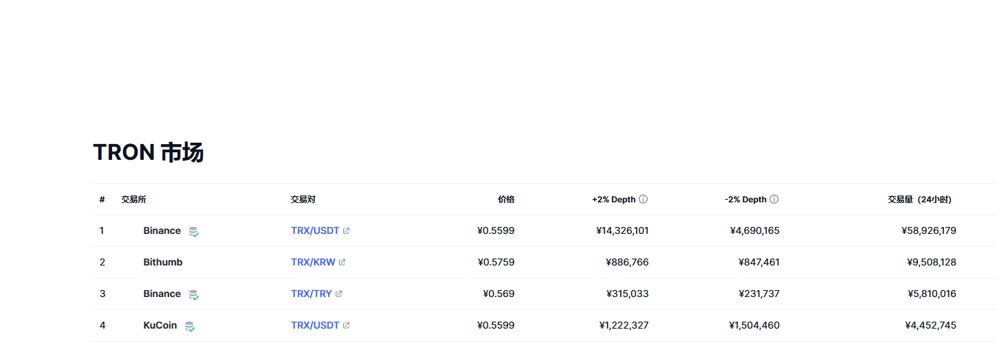 波场币(tron币)各个交易所价格