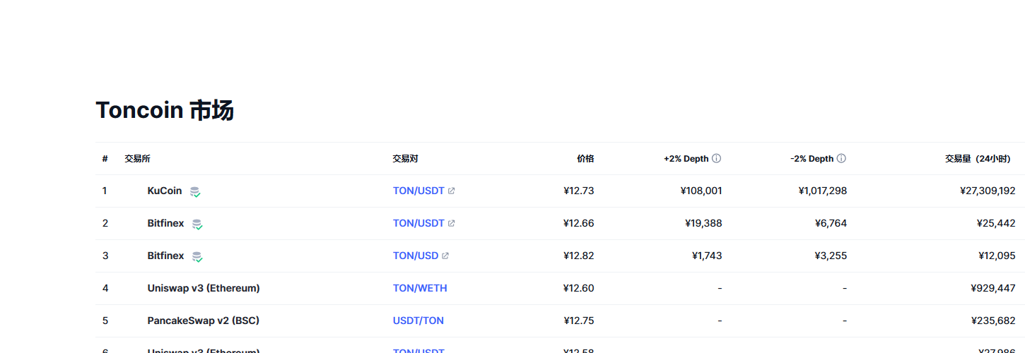 Toncoin(Ton币)各个交易所价格