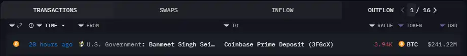 美国政府的抛售比特币的历史比较悠久了。不过自 2023 年 7 月到 2024 年 3 月以来,美国政府还没售过比特币。链上记录显示,最近的一笔出售是 6 月 27 日被美国政府地址向 Coinbase Prime 发送 4000 枚 BTC。