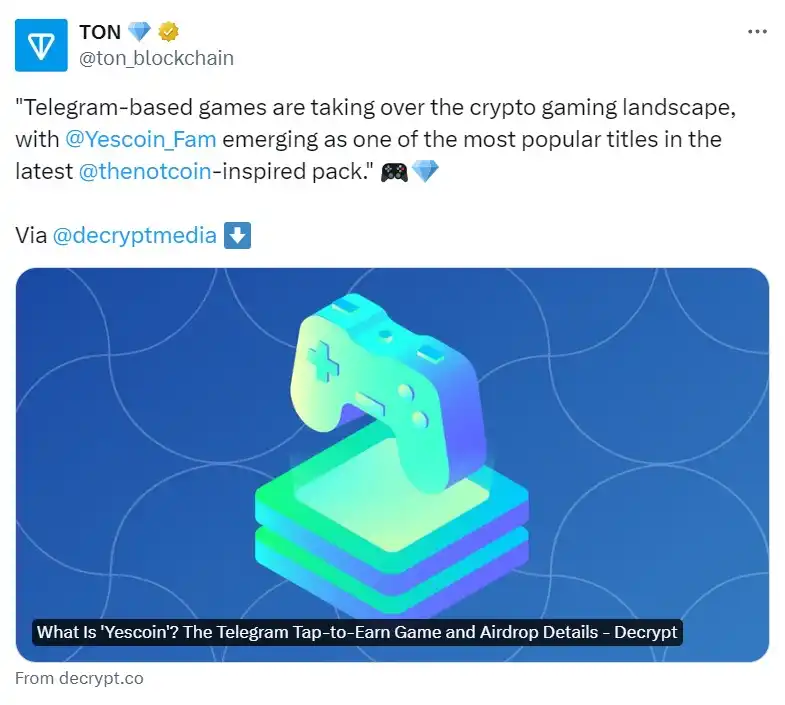虽然名字看上去特别像 Notcoin 仿盘,但是这玩意被 TON 官推推荐过。加上增长数据一直都不错,所以不要被名字迷惑而小视了。