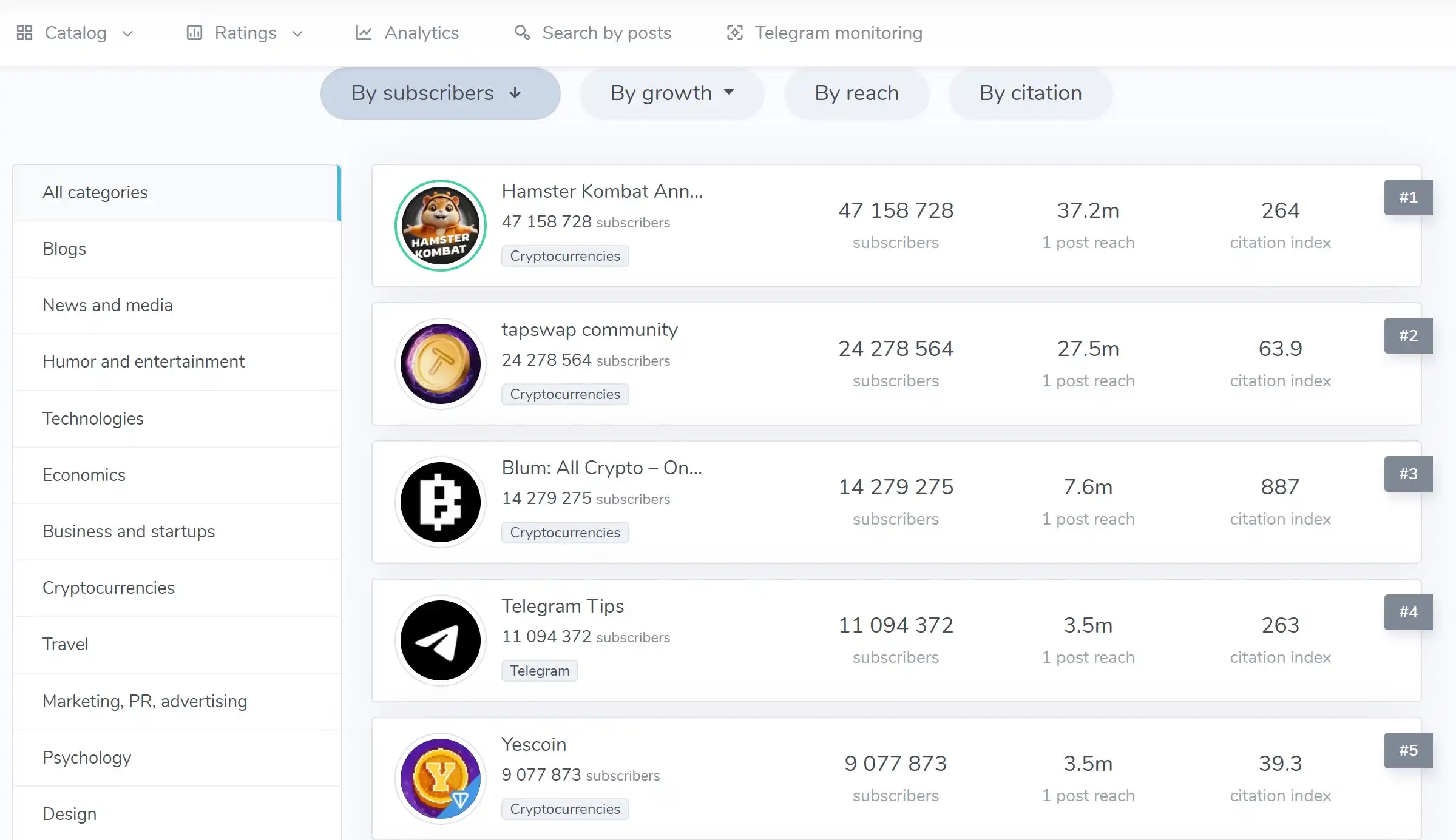 目前总订阅数排名第 5 的 Telegram Channel。注意,这个 Yescoin 的官推是 @Yescoin_Fam,有一个同名的容易搞混了。