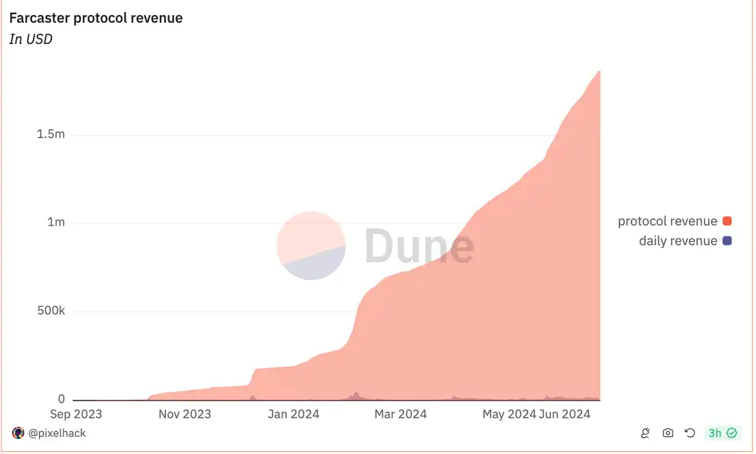截至目前,通过注册费和数据存储费用,Farcaster 已累计收入近 190 万美元。