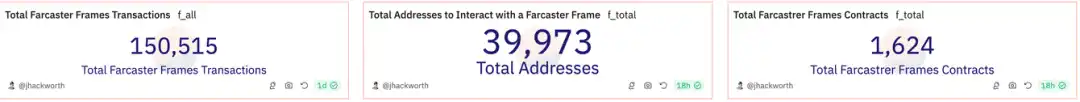 目前,已有近 4 万用户使用 Frames 功能,产生了超过 15 万条链上交易,设计互动的合约数量达到 1624 个。