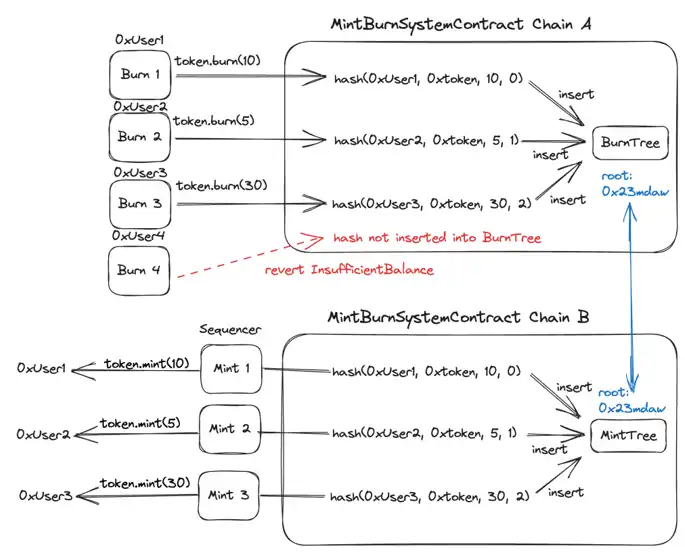 2. 链 B 上的 mint 操作:排序器在执行成功后记录到 mintTree。