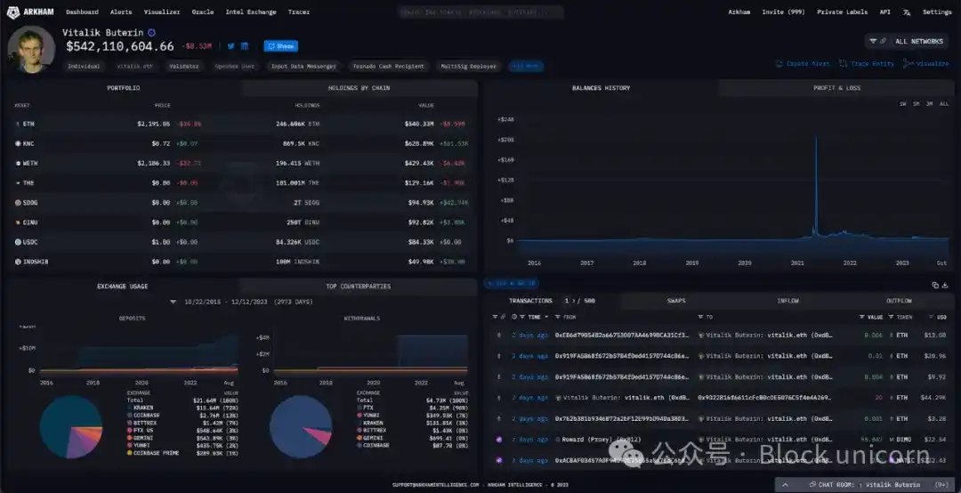 Vitalik Buterin 的净资产估计至少为 8.3 亿美元,以下的资料都来源于 ARKHAM 数据档案。