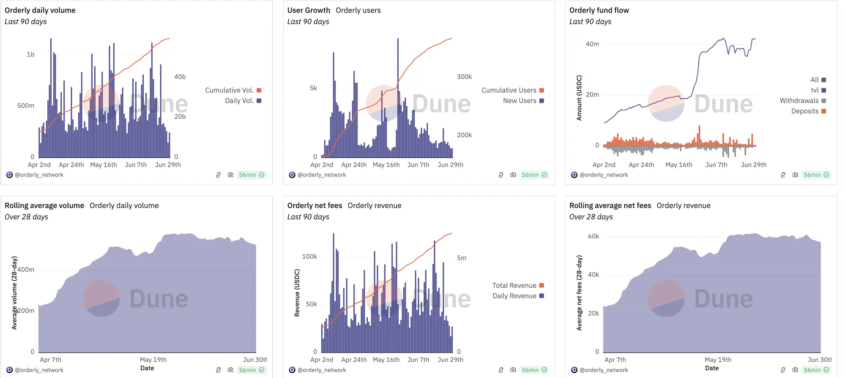 Orderly Network 致力于在全链基础设施之上构建优化订单执行的去中心化市场基础设施,目前已经覆盖以太坊、Arbitrum、Optimism、Polygon、Base 和 Mantle 等六个网络。上线以来,Orderly Network 已经吸引了超 36 万名 Web3 用户,协议收入达 637 万美元。