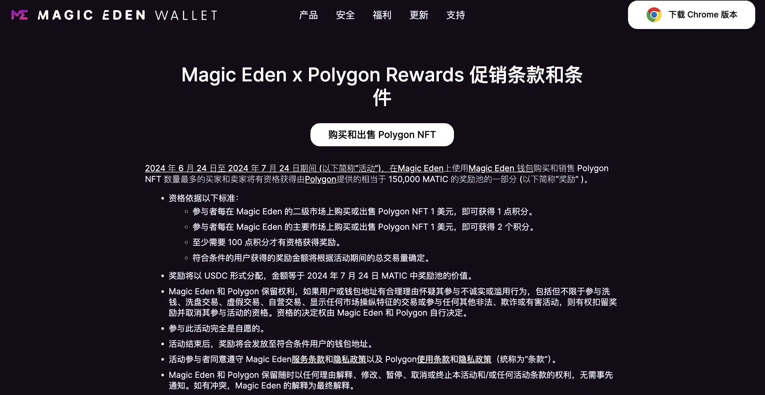 Magic Eden 平台联合 Polygon 做的 NFT 交易活动。
