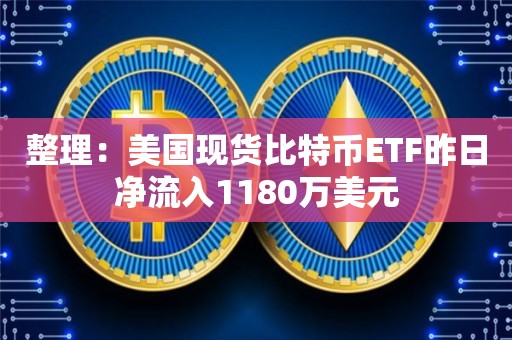 整理:美国现货比特币ETF昨日净流入1180万美元