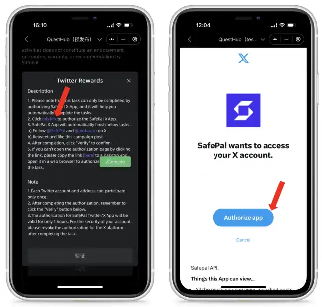 1)需授权 SafePal X app 完成本任务